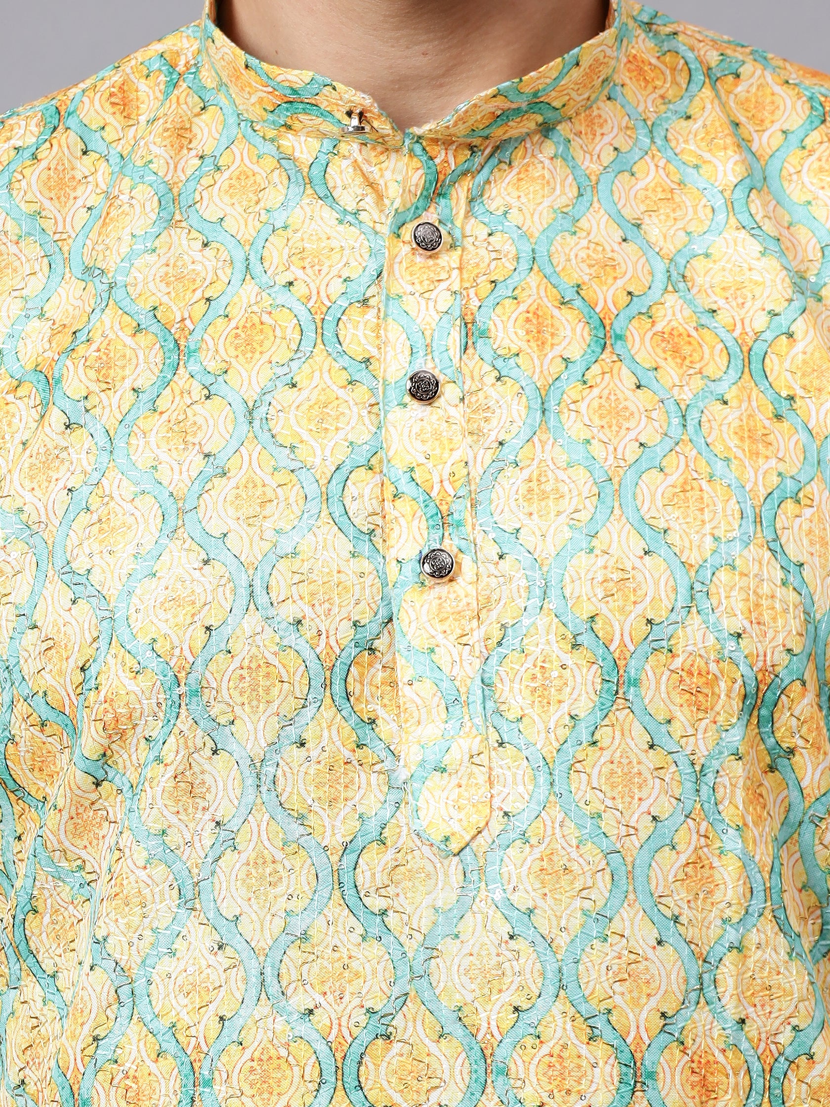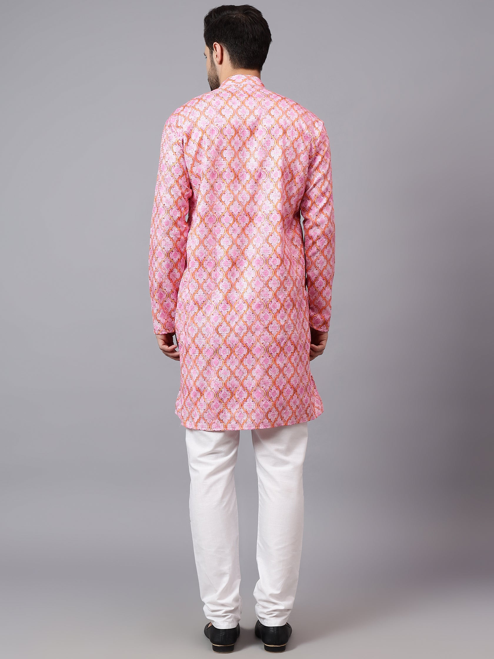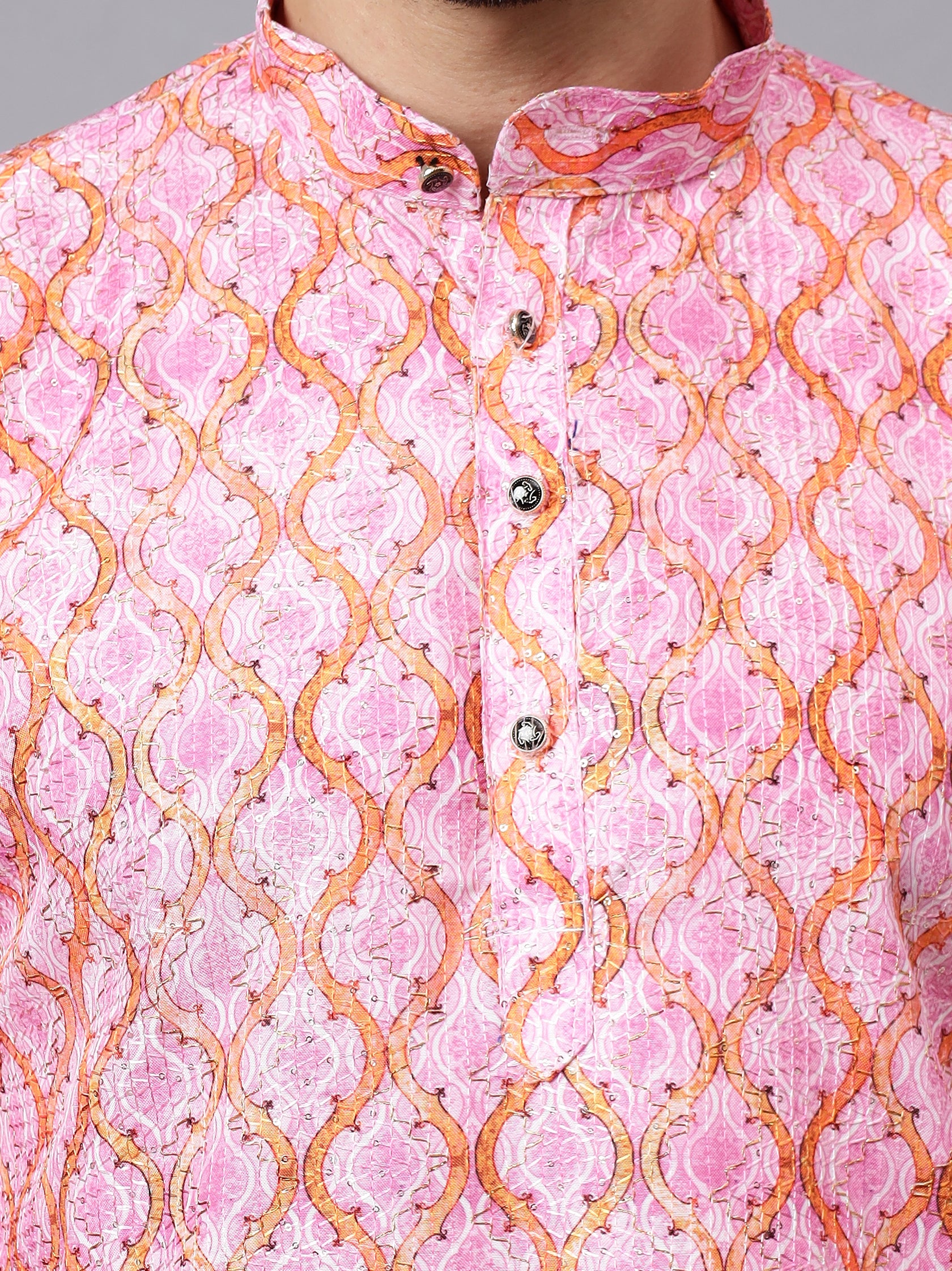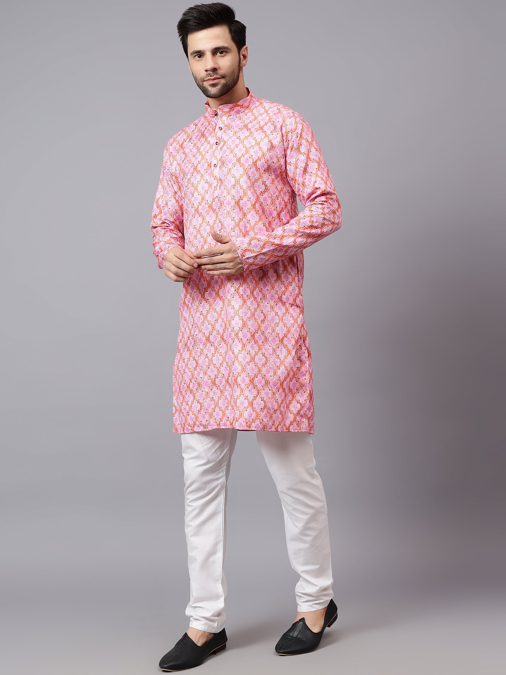 ποΈ Shop Now: Enhance your wardrobe with the sophisticated Yugnik Men's Peach Self-Printed Curve Line Crochet Fabric Long Kurta Set, combining tradition and modern style effortlessly.